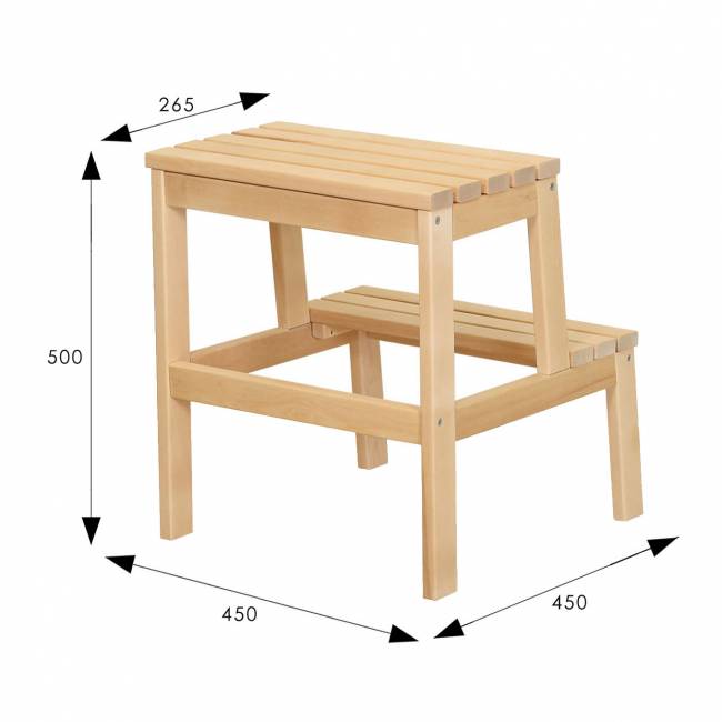 Лесенка-стремянка - отличный помощник во многих повседневных задачах. Её устойчивая конструкция обеспечит комфортный и безопасный подъём на высоту. Использовать специальный табурет-стремянку намного удобнее, чем балансировать на стуле. Маленьким детям лестница-стремянка поможет развиваться: учиться не бояться высоты, преодолевать препятствия, выполнять бытовые дела. Износостойкий материал гарантирует долговечную службу предмета мебели. Максимальная нагрузка - 120 кг. МАТЕРИАЛЫ: массив березы УПАКОВКА: 48,5*45,5*8 см, 1 место ВЕС: 5,9 кг Цвет: бук, венге, лак, орех, снег
